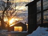 I’m looking forward to a bike ride. The snow has finally melted enough for a ride. Last week, it was still very cold and snow only melted from the roads at the park. I shot a lovely photo of sunset through the glass windows of William DuPont’s shed. Why did he think it was necessary for windows on three sides of a work shed. How fortunate to have been able to afford so much glass during wartime (WWII era).