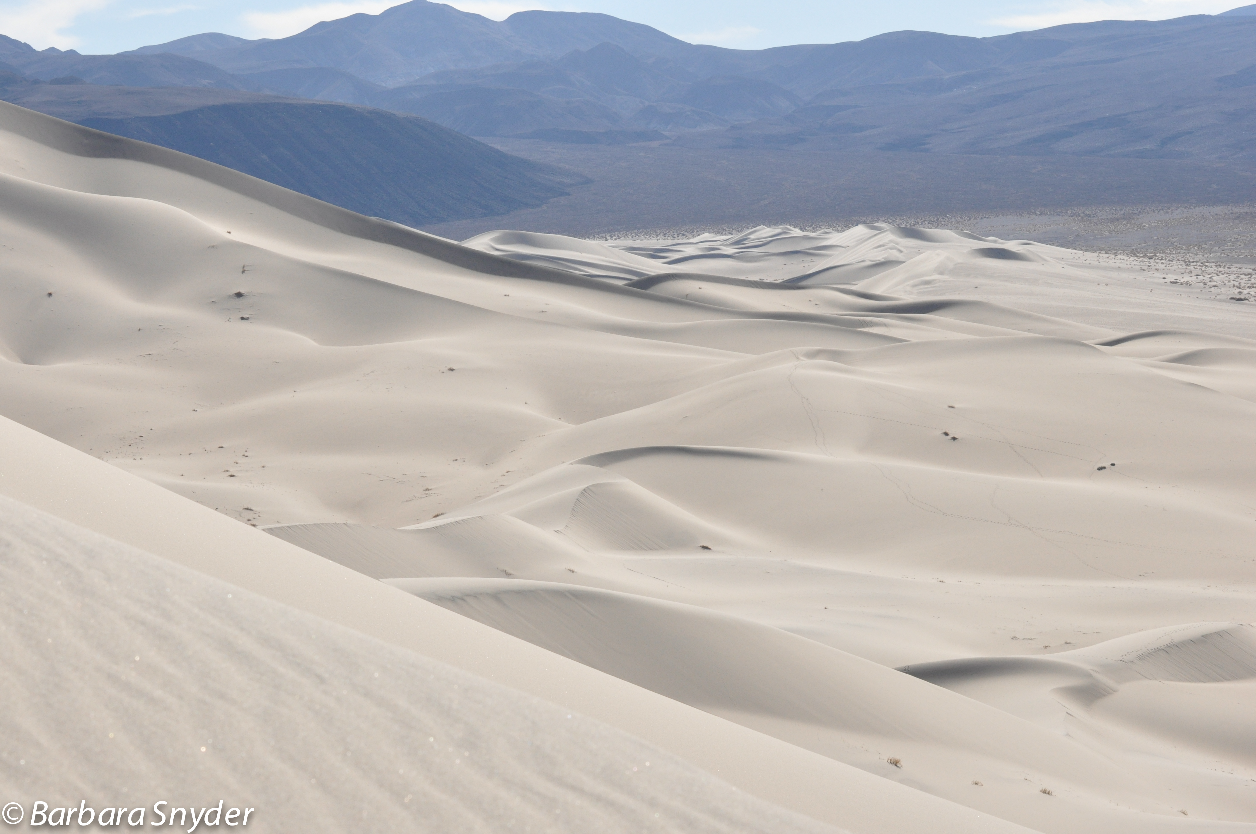 Eureka Valley was high on my list of ‘must see’ places while residing near the Eastern Sierras, as the opportunity to photograph sand dunes so close to home base was calling me. One of the entrances to Death Valley juts off the road to Deep Springs – but with a big CLOSED sign that’s been there for as long as I’ve been here in Owens Valley. So it was a pleasant surprise that while talking with a librarian at the local library, he mentioned that he would be traveling out to the sand dunes over the Thanksgiving weekend. He assured me that the road to Eureka was not closed, only the continuing road into Death Valley. So armed with all my lenses, lots of food and water, I traveled the approximately 65 miles to Eureka Valley.