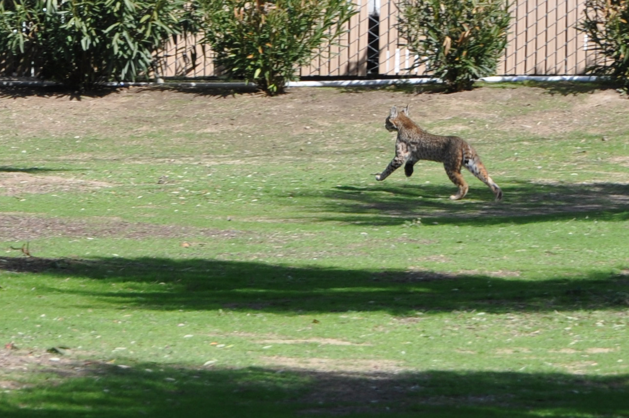 1. E- I woke up this morning wondering not so much about the bobcat, but mountain lions, as they have been known to attack humans. The bobcat was frightened away easily though. Air horn is a good idea! Miss you!