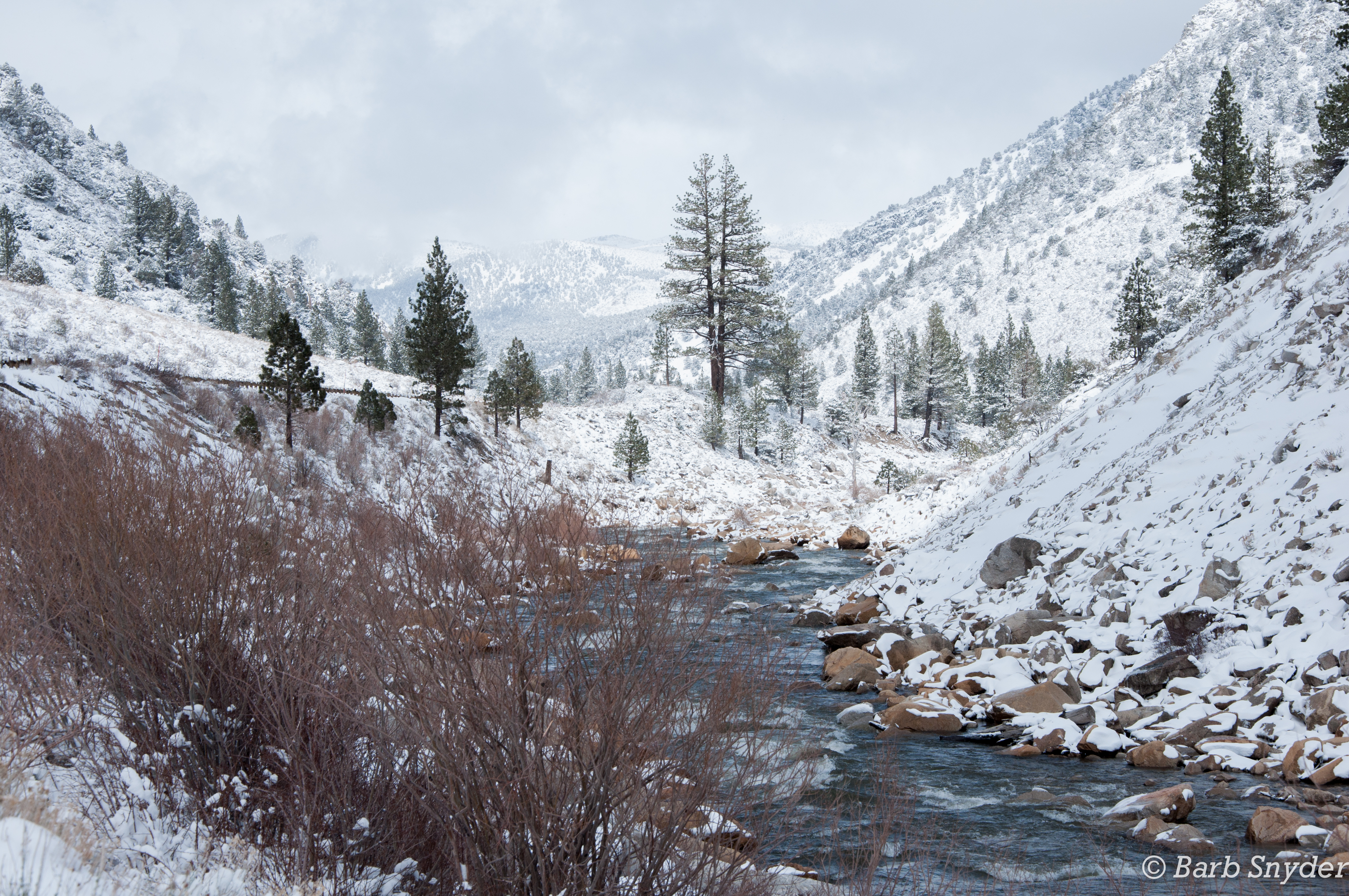 On the car trip up 395 from Bishop to Reno to catch my flight, I turned a 3.5 hour trip into six by stopping many times for photos. I finally had to make myself stop snapping pixs so as to not miss my flight to Seattle to visit my friends Laurie and Kevin. All through the trip there was snow. It was either falling in the distance, or I was driving through blizzard conditions where you feel like you’re driving through a tunnel of fast-moving snow. I agree with Cousin Tara that it’s wonderful to drive in the snow.