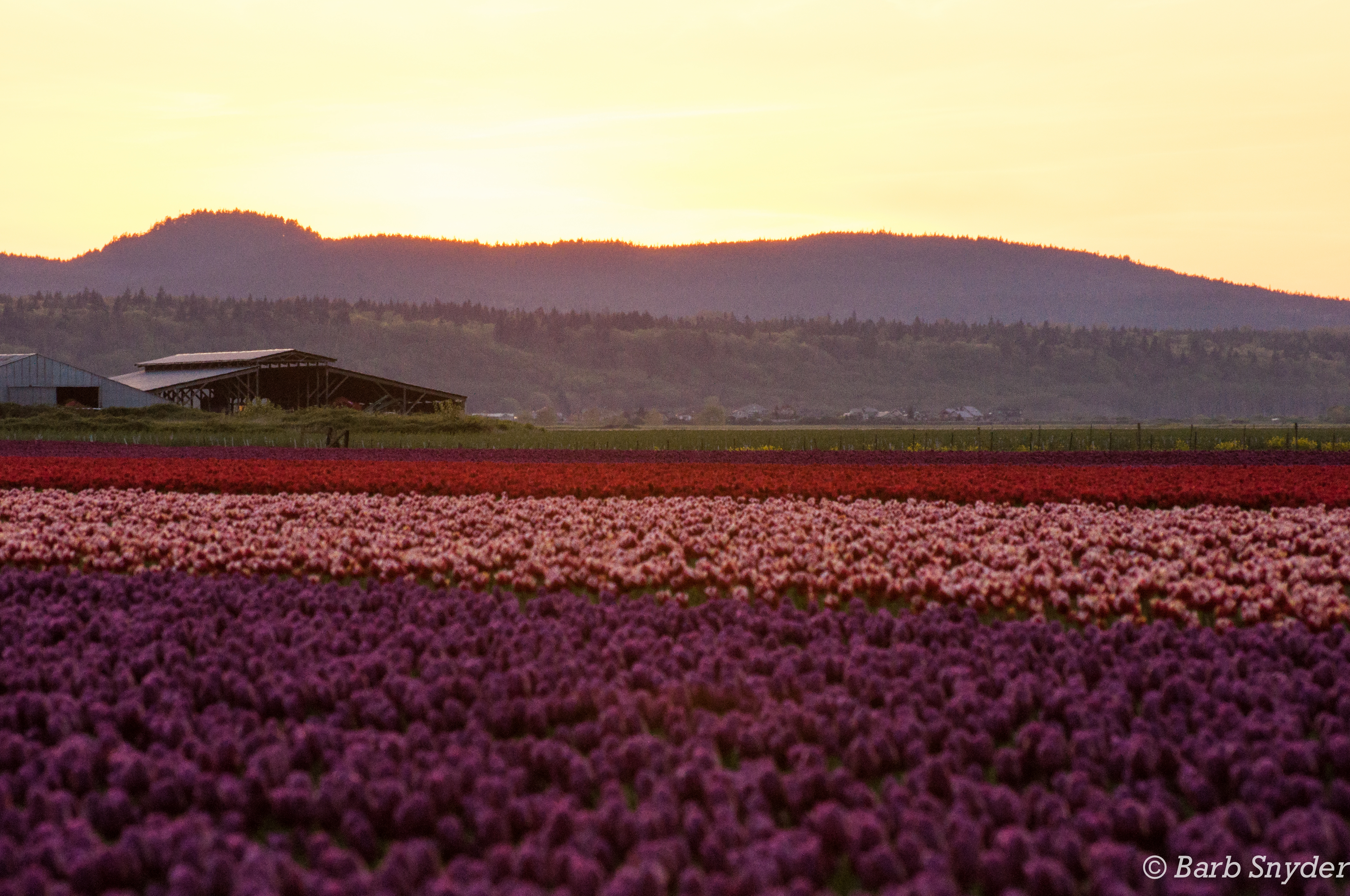 I visited the Skagit Valley Tulip Festival on two different days in April; but only had time for one grower: Roozen Gaarde. The first day was a rainy, chilly, typically Washington State spring day. The second day was warm, sunny and bright followed by a cold sunset in the tulip fields; my hands were frozen ice cubes by the time I climbed back into the car.
