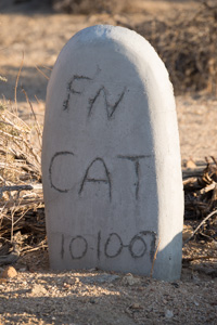 I’ve always been drawn to graveyards and visit them regularly whether or not I know anyone lying therein. I commune with the spirits there. I wrote about a tribal graveyard previously in my posts Tribal Burial Grounds, so imagine my surprise when while hiking outside of town I came across a different dry, neglected-looking graveyard. I started walking through and much to my surprise, I found this: