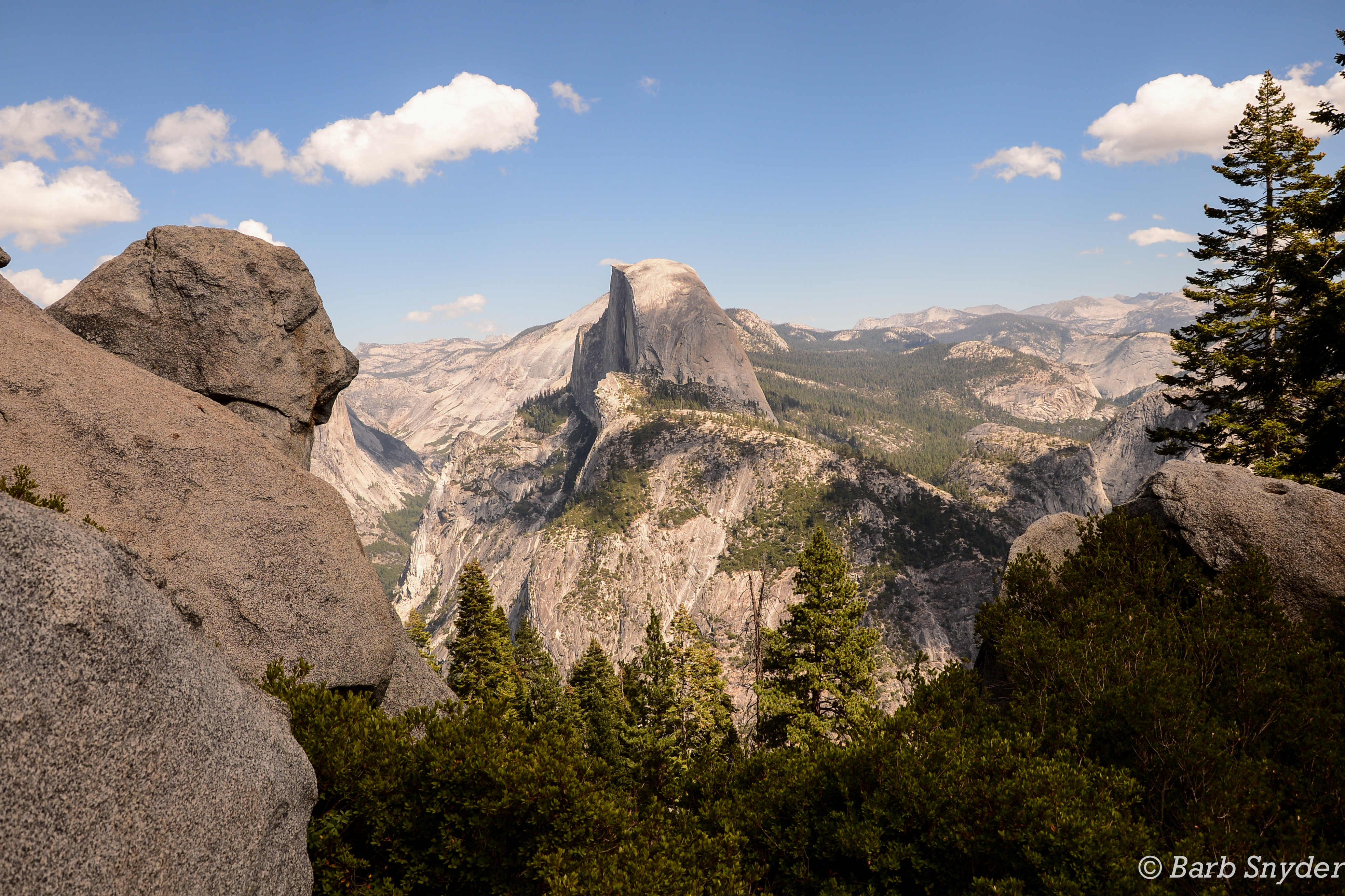 On our first day’s exploration, we went to Glacier Point and the Mariposa Sequoia Grove. The view from Glacier Point included Half Dome in the distance and Cathedral Point.