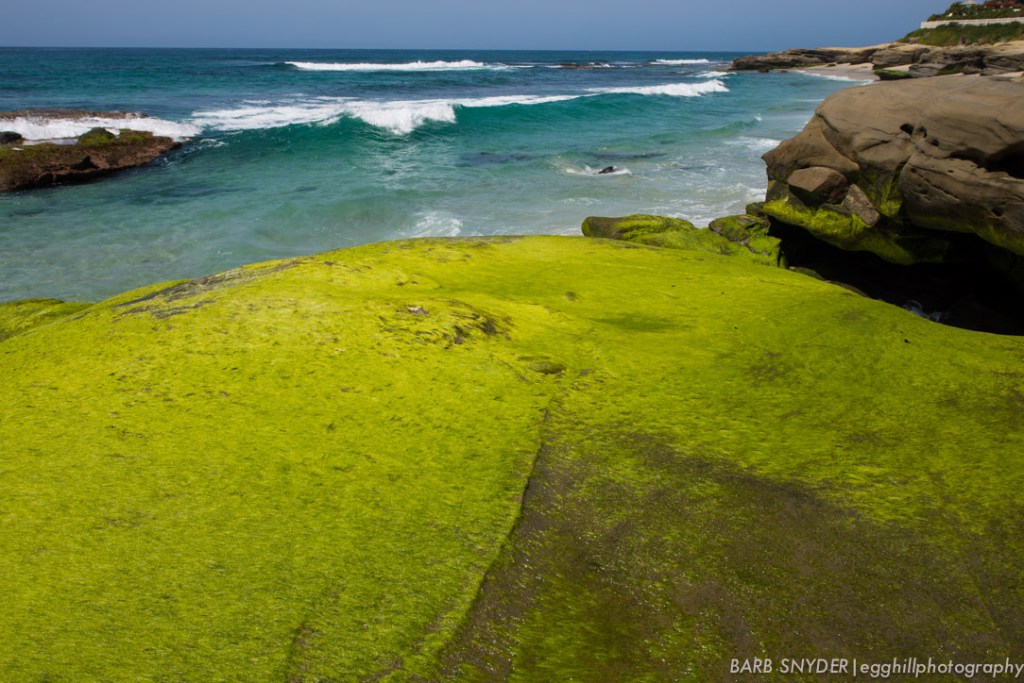 This photo caused me to get wet almost to my waist (thank goodness for quick drying pants). Bodhi and crew were on top of the rock by this time, but I liked the Chartreuse color of the algae straws and the aquamarine sea beyond. The tide was coming in by this time and it felt wonderful to feel the sand slipping out from beneath my feet, and the force of the waves nearly knocking me (and my camera) over. The sea was much warmer than I expected given that the jet stream is the exact opposite of the Atlantic Ocean which brings warmth from the Caribbean. Here, the jet stream brings icy water from Alaska along with whales, sea lions, seals and sharks.