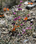 Up until the other side of this mountain I’d been traveling up in my car, I had only seen Orange Globemallow. After I crested the top of the mountain and down far enough on the other side for the flowers to start blooming again, I start seeing Lavender Globemallow. At one spot, I saw Orange and Lavender, then I reached the spot where cross-pollination happened with a lovely new shade. Then it went back to all Lavender, then later at the bottom of the valley, they were all orange again! Click on one of the thumbnails to get the slide show started.