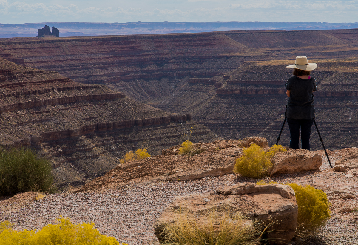 After Goosenecks, we checked into our campground. This allowed me time to fix the flat tire that I had to have changed in Monument Valley. The poor AAA people had to travel 1.5 hours to get to me, gotta love AAA. Later that afternoon, part of our group traveled to the Valley of the Gods. This was another of those days when sweat drips from your eyebrows, nose and chin. Gosh it was hot. My friend Joe said we barely touched the length and breadth of the Valley of the Gods, but we ran out of daylight.